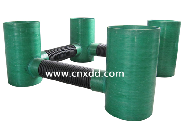 采用纖維纏繞生產的玻璃鋼井室,其比重在1.8-2.0,但強度可達50-120Mpa,這樣它就可以按用戶的不同要求,設計成滿足各類承受內、外壓力、軸向受力要求的結構。它與配管之間的承插連接方式,安裝快捷簡便,同時降低了吊裝費用,提高了安裝速度。